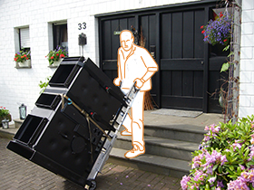 Transport von Tresoren, Waffenschränken, schweren Büro- und Haushalts-Maschinen, Getränke- und anderen Automaten sowie bei der Aufzugs-, Klima und Heizungsmontage.